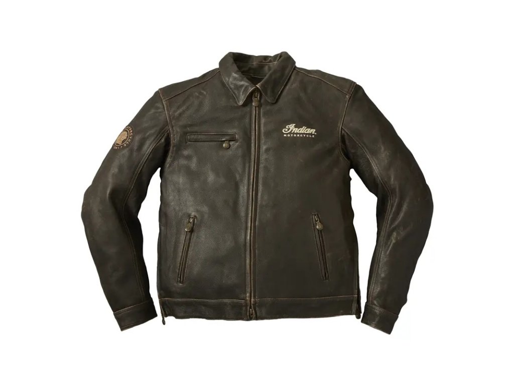 Indian Motorcycle Men's Leather Classic Riding Jacket with Removable Lining, Dark Brown